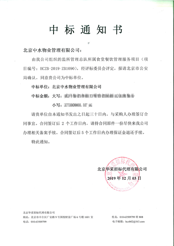 监所管理总队所属食堂餐饮管理服务项目成功中标