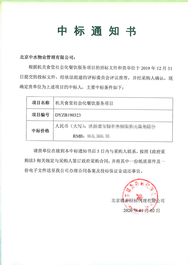 监所管理总队所属食堂餐饮管理服务项目成功中标