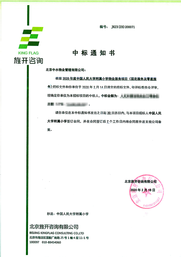 2020年度中国人民大学附属小学物业服务项目成功中标