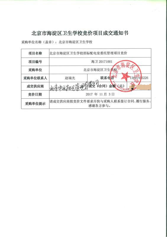 北京海淀区卫生学校配电室委托管理项目成功中标